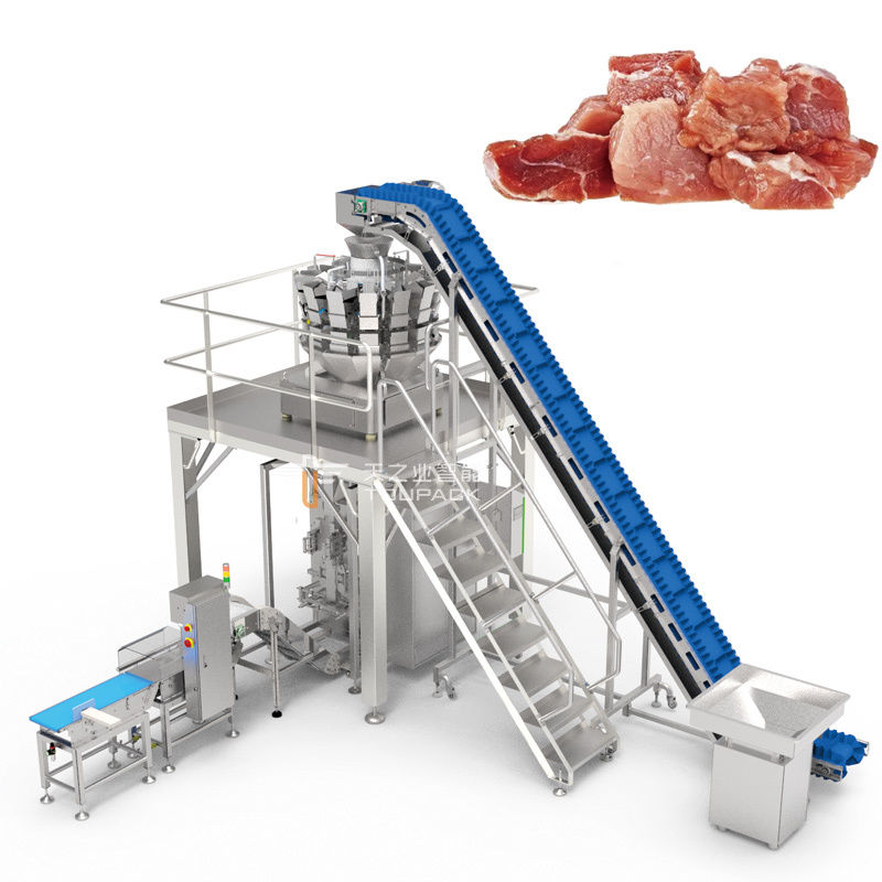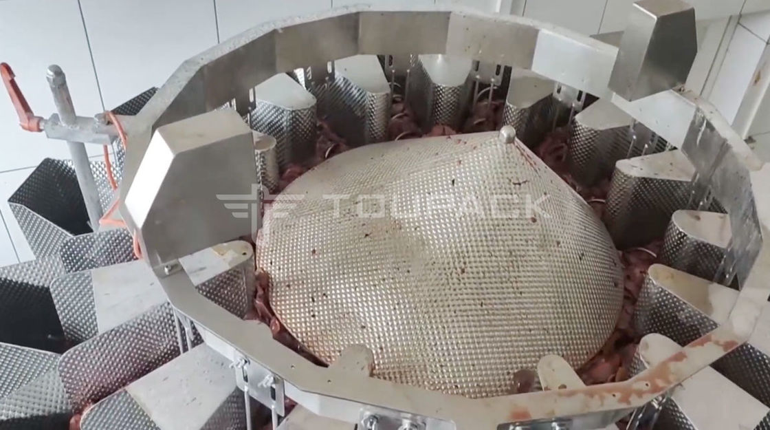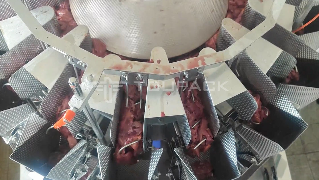 Toupack Multihead Weigher is een betrouwbare en kosteneffectieve oplossing voor het wegen van kleverige materialen zoals kippenlever.Het is gemaakt van hoogwaardig roestvrij staal en is uitgerust met een touchscreenHet is gecertificeerd met CE en ISO 9001 en heeft een stroomverbruik van 1,5 kW.