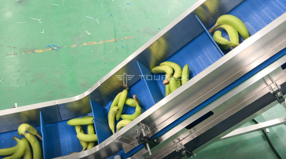Schuine transportband: De geleidetrechter is in het onderste horizontale gedeelte (nabij één uiteinde van de bandschaal) geplaatst om te voorkomen dat materiaal morsen; Uitgerust met een gootsteen, gemakkelijk om restmaterialen te verzamelen; De materiaalgeleideplaat is aan het bovenste afvoereinde toegevoegd om de val tussen de takel en de netzakmachine te minimaliseren om ervoor te zorgen dat het materiaal goed wordt beschermd.