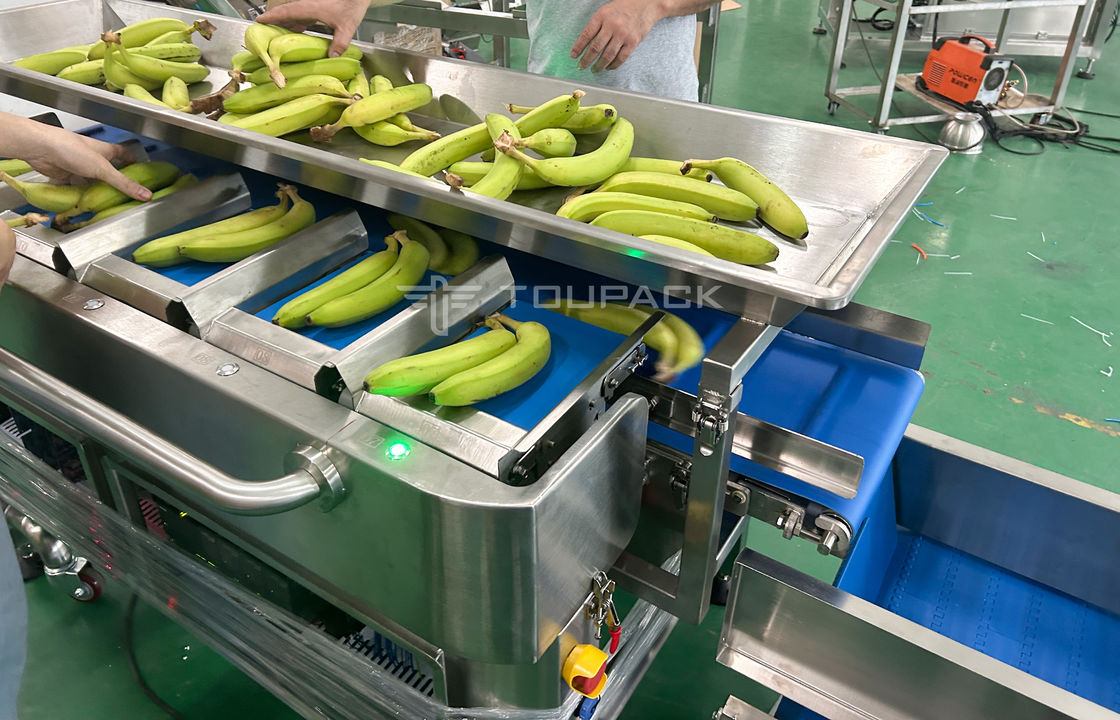 Oplossing: twaalfkops weegbandcombinatieschaal + schuine transportband + semi-automatische netzakverpakkingsmachine